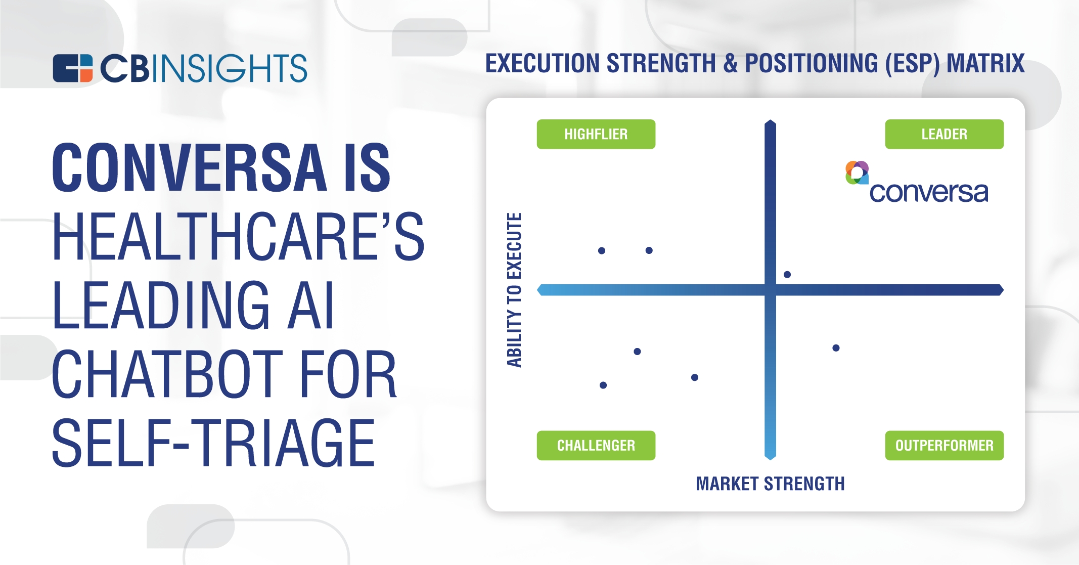 CB Insights, a technology market intelligence company, issued a new report ranking Conversa Health tops in the “leader” category of its analysis of companies providing artificial intelligence-enabled chatbots for self-triage. Conversa scored highest in CB Insights’ analysis on both “ability to execute” and “market strength.”