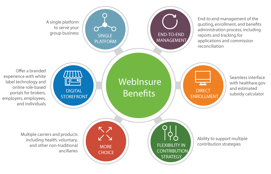 - WebInsure Benefits supports direct enrollment for consumers in states that use HealthCare.gov for on-exchange plans offered under the Affordable Care Act, so brokers can use the same platform for both employer group and individual enrollments.