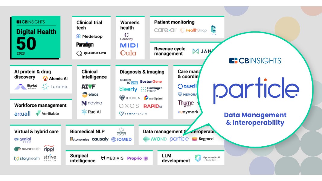 Particle Health, a data platform that aggregates and delivers actionable patient data and insights to healthcare companies, has been named to the CB Insights Digital Health 50 for the second year in a row. The fifth annual awards program (previously the Digital Health 150), which curates a list of the 50 most promising private digital health companies across the globe, selected Particle for its analytics platform innovation in the data management and interoperability category.