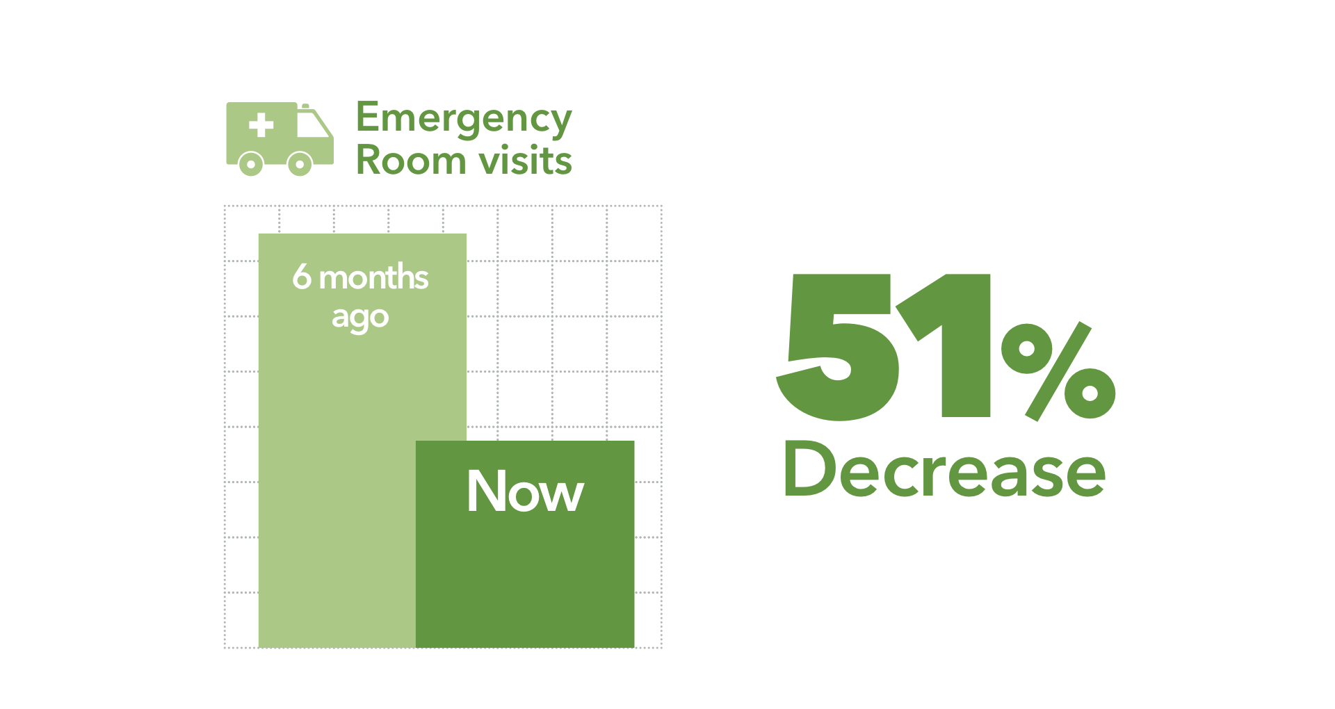 • 51 percent drop in emergency department visits