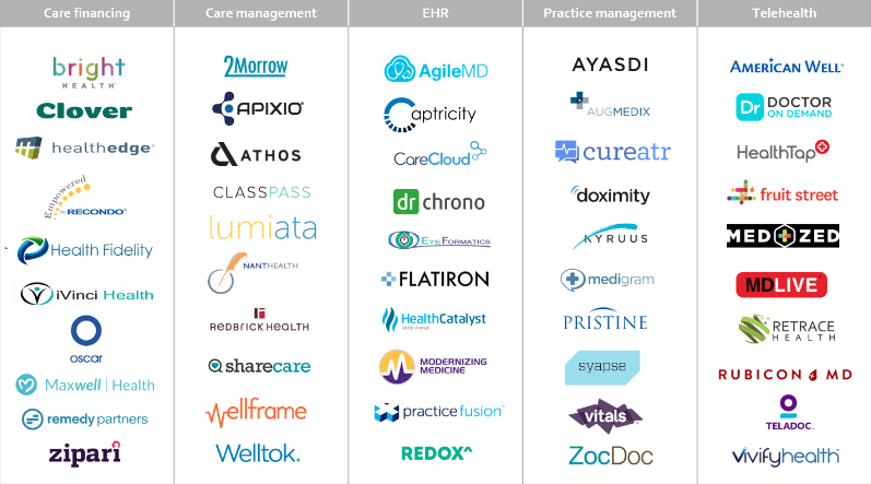 The “leader board” of the Everest Group list of hot healthcare start-ups comprises five highest-ranking companies in each of five focus-area segments: