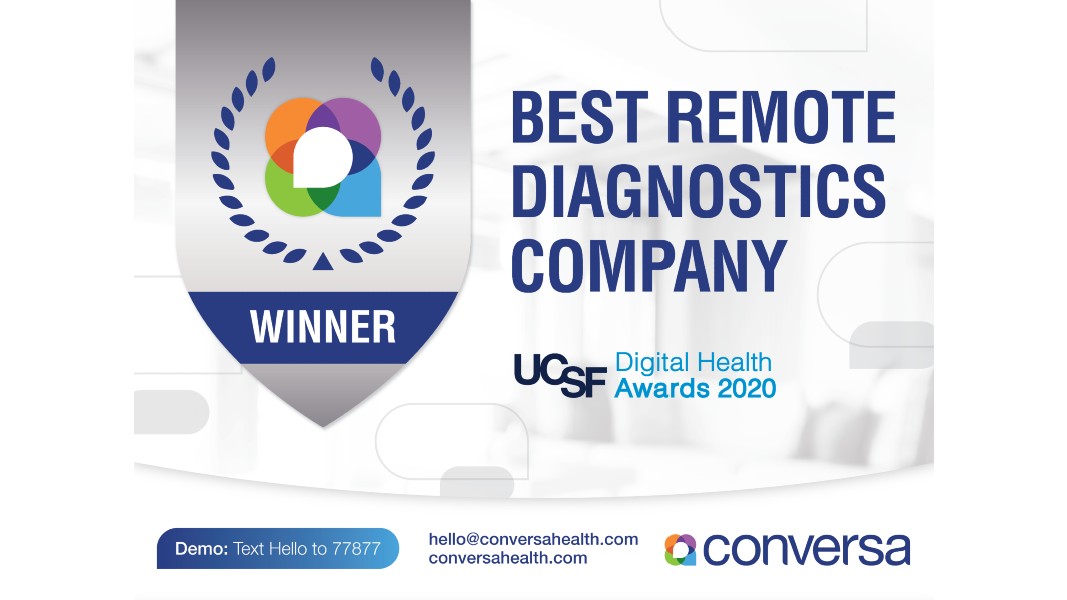 The UCSF Digital Health Awards has recognized Conversa Health as the “best remote diagnostics company” for 2020. Conversa Health was among more than 750 companies from across the globe that entered in 10 categories of the prestigious awards program produced by the UCSF Health Hub.